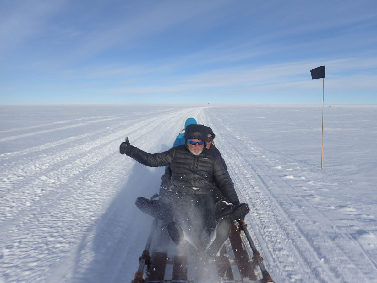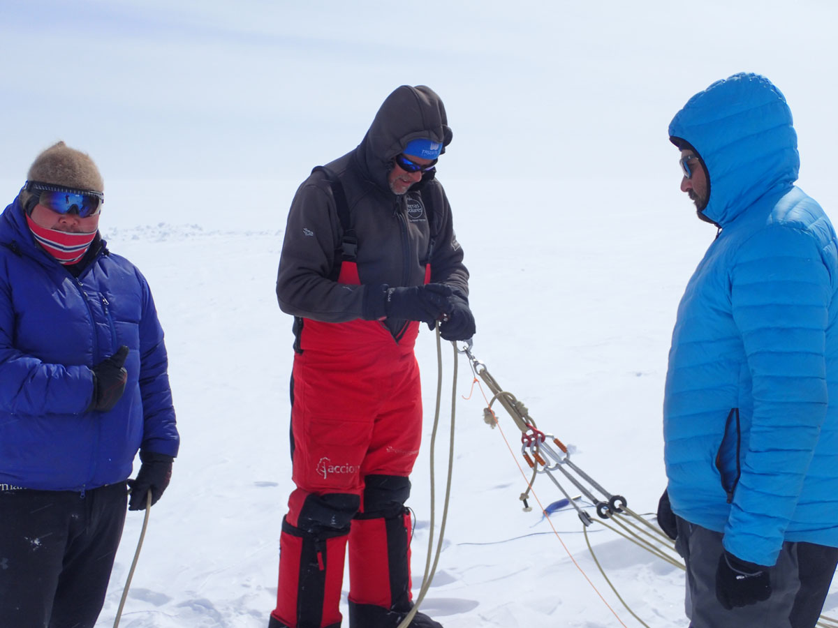 The five-member team was led by Ramón Larramendi, explorer and creator of the WindSled. The crew included the renowned researcher Ross Edwards (Curtin University / University of Wisconsin), mountain guide Hilo Moreno, audiovisual producer Nacho García, and captain and polar logistics expert Jens Jacob Simonsen. Together, they operated the WindSled in its complete 12-meter, four-module configuration, transporting nearly 2,000 kg of scientific equipment using only wind, solar, and kinetic energy.